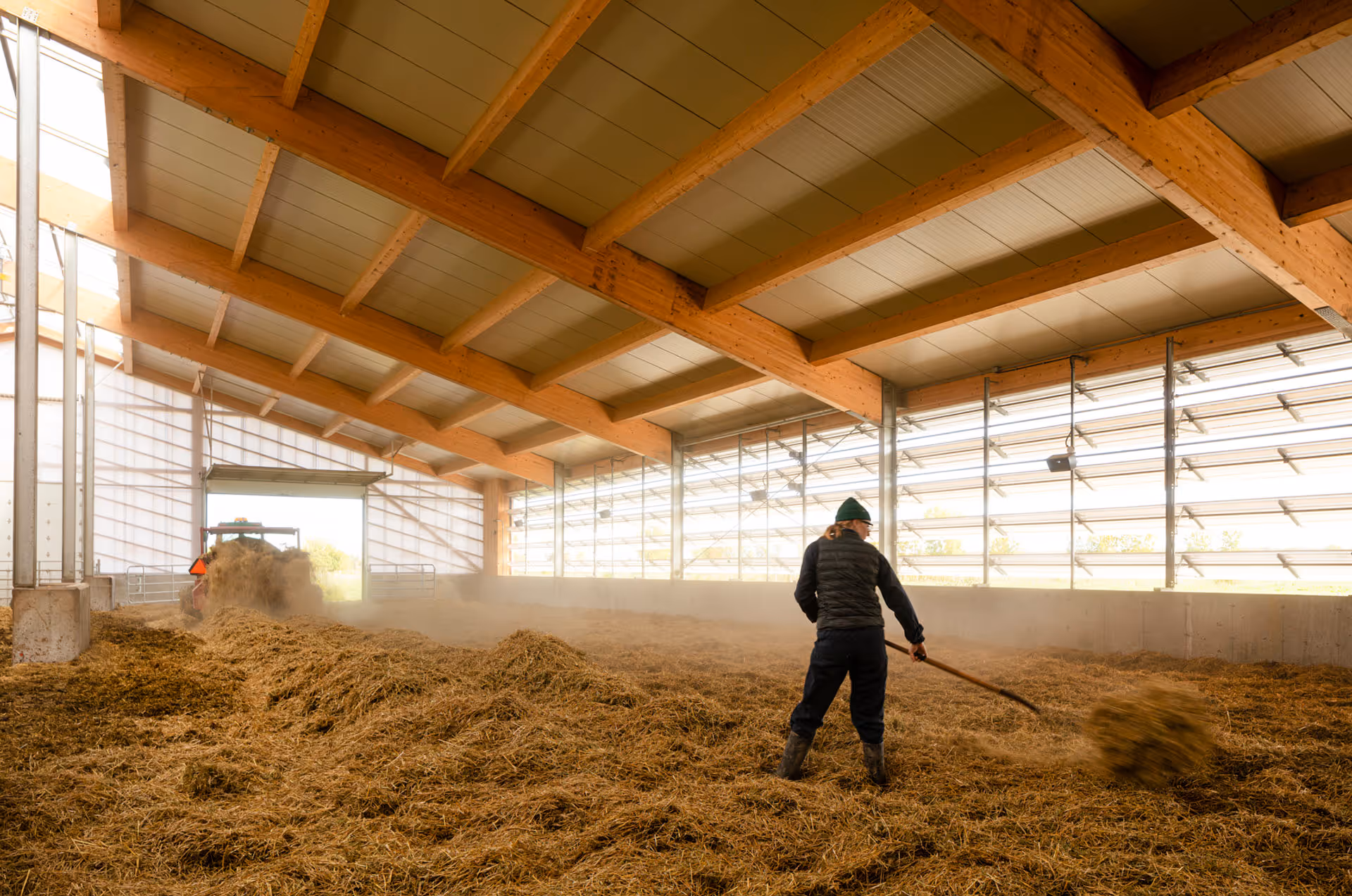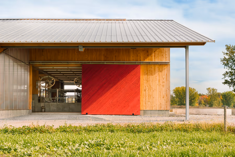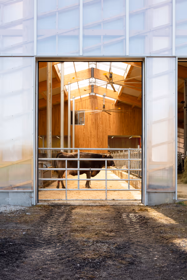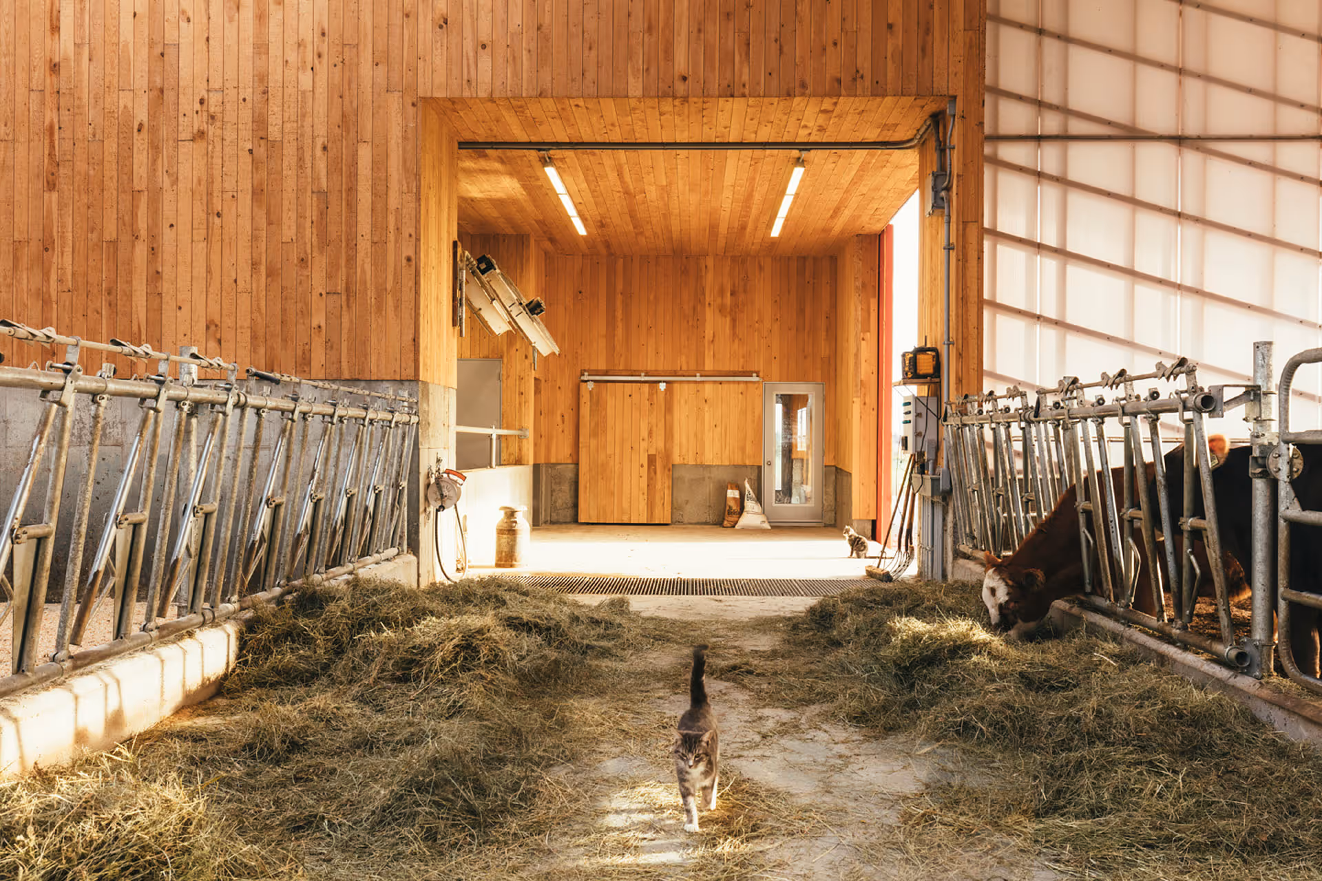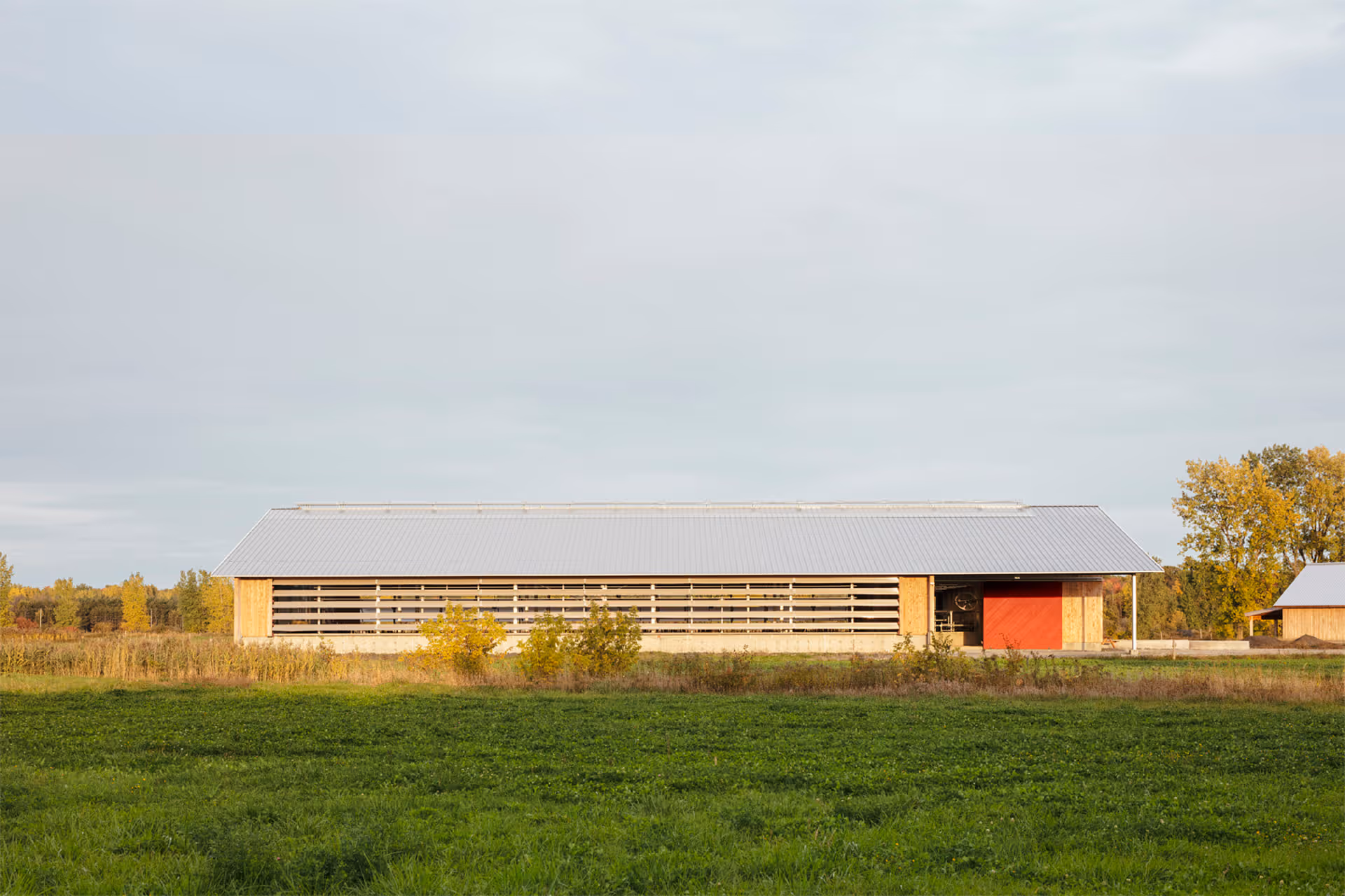 Leur nouvel étable était l’occasion d’offrir aux vaches et au personnel un environnement agréable qui perdurera dans le temps, en plus de remettre les notions de respect du paysage rural et du patrimoine agricole au cœur de la conception.